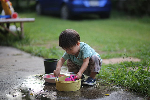 หัดให้ขอบฟ้าได้ลองปลูกต้นไม้ ใส่เมล็ดในกระถางดำเสร็จแล้ว รดน้ำแล้ว แต่ยังอยากเล่นน้ำอยู่ก็เลยเลิกสนใจกระถางดำไปเฉยๆ