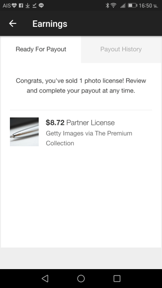 รายได้ที่เฝ้ารอมานาน ในที่สุดก็มา เป็นภาพที่ถูกโหลดในเว็บ gettyimages ซึ่งเป็นพาร์ทเนอร์กับ eyeem อีกทีหนึ่ง เท่ากับว่า ผมก็เป็นคนที่มีภาพตัวเองฝากขายอยู่ใน gettyimages ไปโดยปริยาย ทำให้นึกถึงสมัยก่อนเมื่อสักเกือบสิบปีที่แล้ว ที่ผมต้องสั่งซื้อภาพจากเว็บ gettyimages มาเพื่อทำงานสิ่งพิมพ์ให้กับลูกค้า ตอนนั้นจ่ายไปหลายหมื่นเลยนะกับภาพแค่สามภาพ เว็บนี้ขายภาพแพงจริงๆ