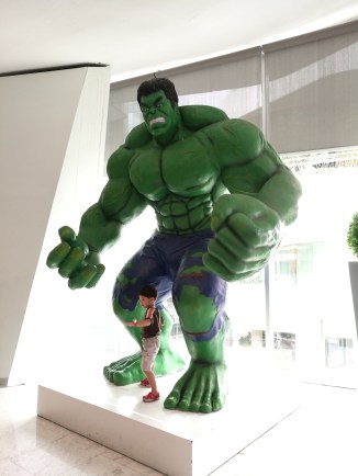 พาลูกเข้าเมือง เดินห้าง กินของแพง ดูของแปลกตา จอดรถแล้วเดินมาขึ้นลิฟท์ ก็พบกับเจ้ายึกษ์เขียวเลย ห้างเอมควอเทีย ชั้นโรงหนัง และยังเจอซุปเปอร์ฮีโร่ตัวอื่นๆอีกหลายตัวเลย เด็กๆคงปลาบปลื้มจริงๆ