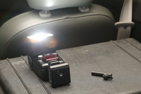 รถฮอนด้าฟรีด เปิดท้ายรถออกมาจะเป็นช่องว่างขนาดใหญ่ เบาะหลังแถว3 หากพับที่พิงให้ราบไปกับเบาะนั่งก็จะได้ที่วางราวกับเป็นโต๊ะทำงาน ผมเอากระเป๋ากล้องขนาดใหญ่ที่ผมซื้อเอาไว้ขนอุปกรณ์ถ่ายภาพวางบนเบาะ เพื่อใช้วางสินค้าที่จะถ่าย ส่วนแสงแฟลชผมก็ติดทริกเกอร์ไร้สาย ตัวส่งสัญญาณติดอยู่บนกล้อง eos 6d ตัวรับสัญญาณเอาไปติดที่ sb26 แล้วก็หันหน้าแฟลชให้ยิงแสงขึ้นเพดานรถ ตั้งใจจะใช้แสงแฟลชสะท้อนกับเพดานรถสีเทา แล้วสะท้อนลงมายังของที่ต้องการถ่ายภาพ