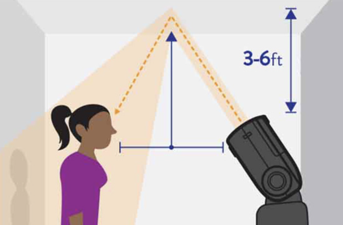 การแก้ปัญหาให้ภาพนี้เลือกใช้วิธีเปิดแฟลชช่วย แสงแฟลชถูกตั้งให้ยิงไปสะท้อนกับเพดาน แล้วแสงแฟลชจะชิ่งกับเพดานสีขาว เราเรียกเทคนิคนี้ว่าการ bounce แสงแฟลชจะกระทบเพดานแล้วกระจายตัวลงมาโดนแบบ ภาพจึงมีความสว่างของตัวแบบเพิ่มขึ้น ลักษณะแสงแฟลชแบบนี้จะมีความนุ่มนวล ค่าแสงแฟลชที่พอดีจะทำให้ภาพดูสมบูรณ์ขึ้นดังภาพล่าง เป็นการใช้แฟลชแก้ปัญหาสภาพแสงภายในและภายนอกต่างกันมากเกินไป