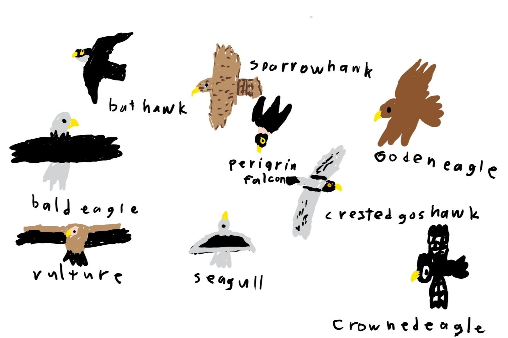 ภาพนกต่างๆที่วาดก็มาจากการดูคลิป การดูหนังสือต่างๆ แล้วก็เลือกตัวที่ชอบทีละตัวมาวาด ด้วยความชอบเรื่องเหยี่ยวและอินทรีย์ พ่อแม่ก็พยายามหาหนังสือเฉพาะทางมาให้อ่าน แล้วเราก็ได้หนังสือรวมนกนักล่ามาจนได้ เป็นการค้นพบโดยบังเอิญ หนังสือเล่มนี้ถูกวางขายเป็นของเคลียร์แล้นซ์ หรือ ของเก่าเก็บขายโละนั่นเอง เล่มนี้ถูกวางขายในงานอีเว้นหนึ่งที่จัด ณ พิพิธภัณฑ์พระราม9