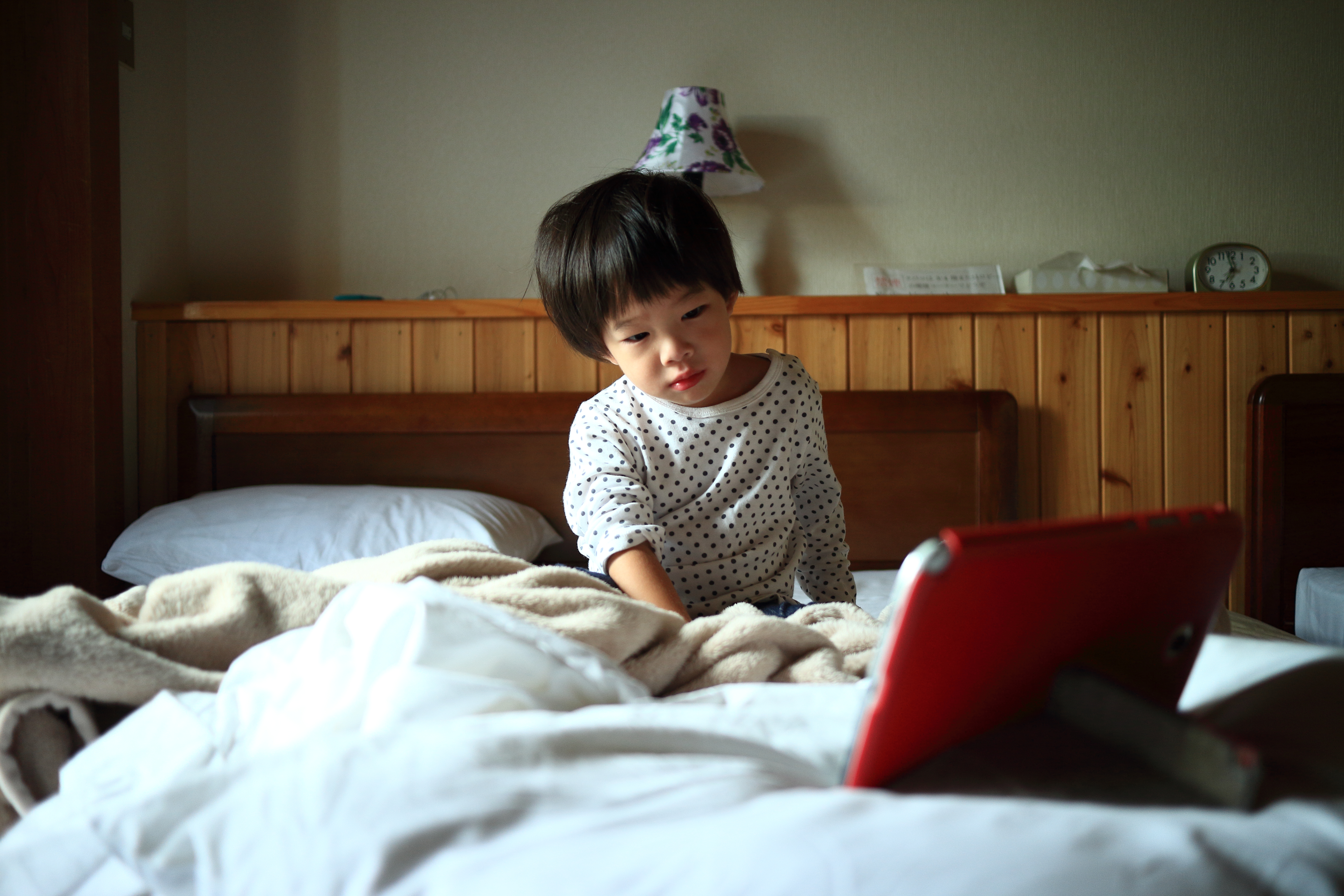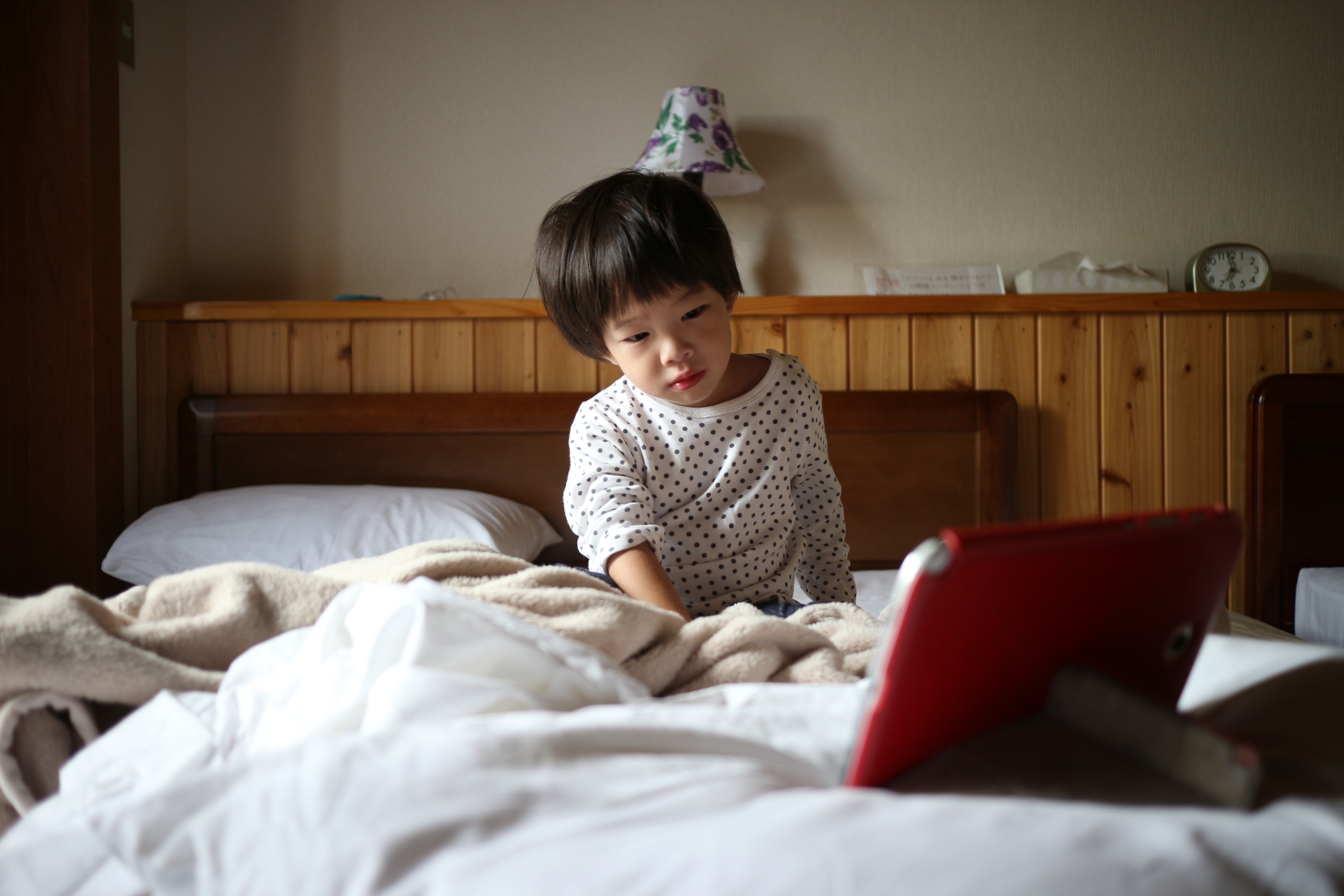 ภาพนี้เป็นภาพสมัยที่ลูกผมอายุ 3 ขวบ และบ้านเราก็หอบหิ้วกันไปเที่ยวญี่ปุ่น ลูกตัวเล็กน่ารัก กำลังนั่งมองการ์ตูนในแท็บเบล็ตที่เราพกไว้สำหรับใช้ถ่วงเวลา เวลาที่งอแงหรือกินอะไรยากเย็น แสงสว่างตอนเช้าส่องเข้าที่หน้าต่าง แดดยังไม่แรง ความสว่างในระยะเริ่มต้นวันใหม่กำลังสวย เลนส์ efm 22f2 เป็นเลนส์ที่ใช้อยู่บนกล้อง canon eos m1 ซึ่งเป็นกล้อง mirrorless รุ่นแรกของ canon