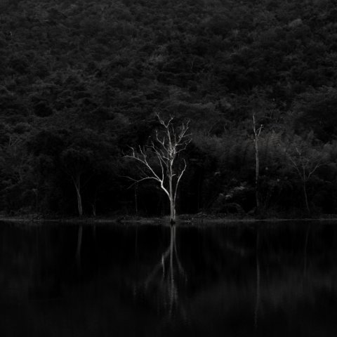 ภาพสีเป็นภาพที่ถ่ายจากอ่างเก็บน้ำแห่งหนึ่งที่ผมจำไม่ได้แล้วว่าชื่อว่าอะไร เป็นภาพเก่าเก็บที่ถ่ายไว้นานเกิน 10 ปี บรรยากาศเมื่อแรกเห็นภาพนี้ผมอึ้งกับความบังเอิญของธรรมชาติ ต้นไม้ยืนต้นตาย อยู่ท่ามกลางป่าและน้ำที่อุดมสมบูรณ์ ราวกับว่ามีคนเอาต้นไม้ตายมาปักไว้ ถ่ายไว้แล้วก็เก็บลืมไปเลย