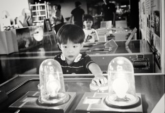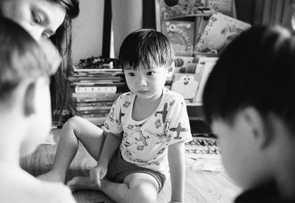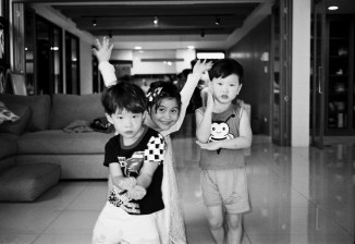 ลองใช้กับฟิล์มสีที่หมดอายุถ่ายภาพที่โดนแดด ก็ยังได้ภาพโอเค แม้ว่าตอนได้ภาพสีจากฟิล์มบูดจะดูจืดๆ แต่พอสแกนแล้วปรับเป็นขาวดำ ปรับคอนทราสต์ช่วยก็ได้ภาพที่พอดูได้ สิ่งสำคัญในภาพก็คือ เหตุการณ์ที่เราต้องการเก็บไว้ ภาพนี้ผมปลาบปลื้มกับความไวของกล้องโดฟมาก จังหวะเด็กสองคนที่กำลังช่วยกันเข็นรถของเล่นไม่ให้ตกลงไป ถ้าใช้กล้องโปร คุณภาพระดับโลก ผมก็ไม่มั่นใจว่าจะโฟกัสได้ทันวินาทีนี้ไหม